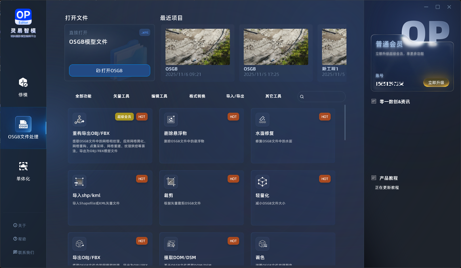 灵易智模可以识别 OSGB Metadata XML 打开OSGB倾斜摄影,可以打开 OPEP 工程。